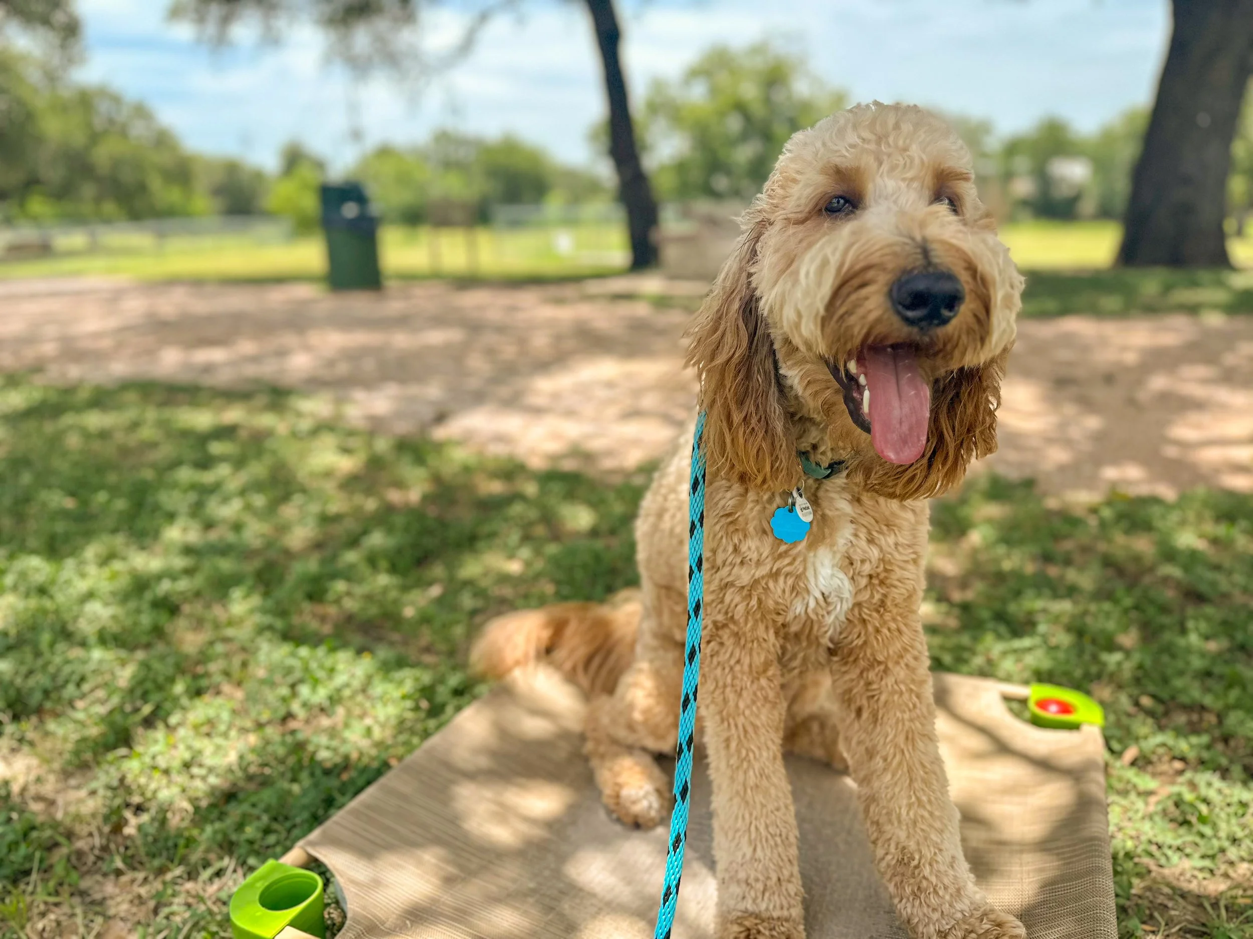 Dudley is my 16 month old, 45.5 pound Goldendoodle who feels it is his duty to greet everyone and every dog he sees. This was proving to be a situation I could not handle with success. I had lost my balance and fallen a couple of times while walking Dudley. This was not all Dudley's fault as I did not have the knowledge as to how best to control my dog. I had lost confidence in my ability and dreaded each walk.